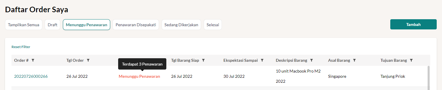 - Klik Menunggu Penawaran pada bagian atas tabel