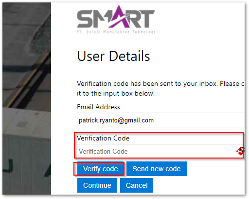 Buka email Anda dan masukan kode verifikasi yang telah dikirimkan ke email Anda Kemudian klik Verify