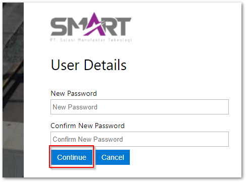 Masukan password dan konfirmasi password baru Kemu klik Continue