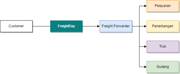 Sebagai pelanggan atau customer Anda hanya akan berurusan dengan salah satu freight forwarder pada FreightDay. Freight Forwarder akan melakukan pengaturan terhadap berbagai vendor logistik untuk menyelesaikan order logistik Anda secara utuh.